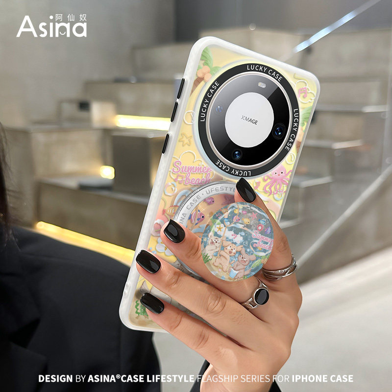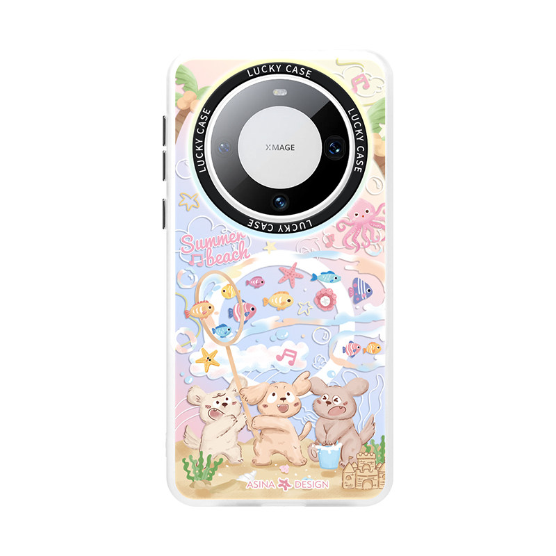 夏日小狗海滩适用华为Mate80promax手机壳磁吸mate60带支架保护套mt40e镭射mete70全包防摔可爱mt30新款网红