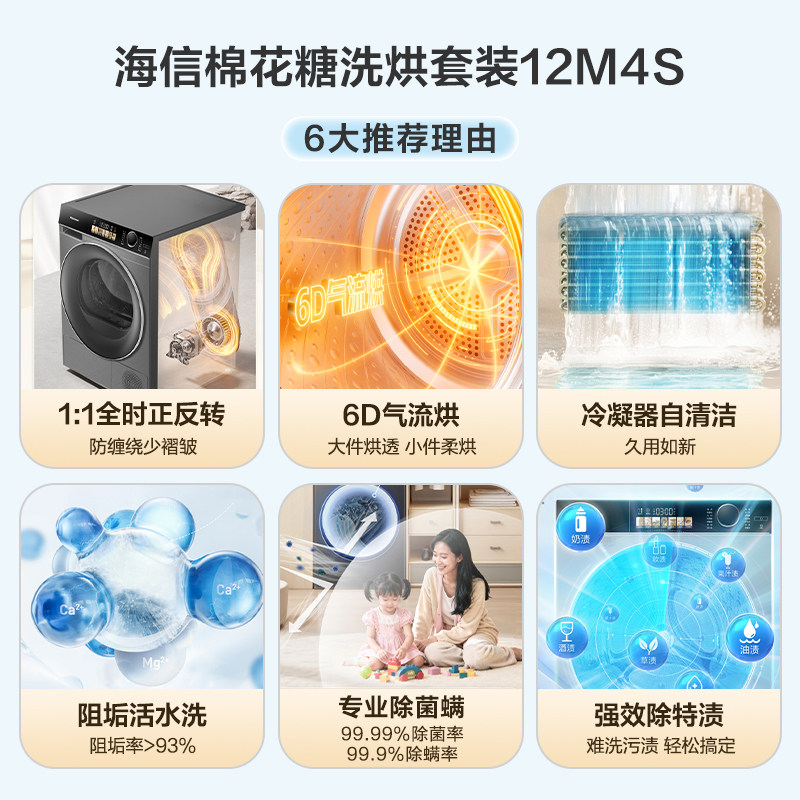 海信棉花糖热泵洗烘套装12公斤大容量全自动活水洗衣机组合M4S