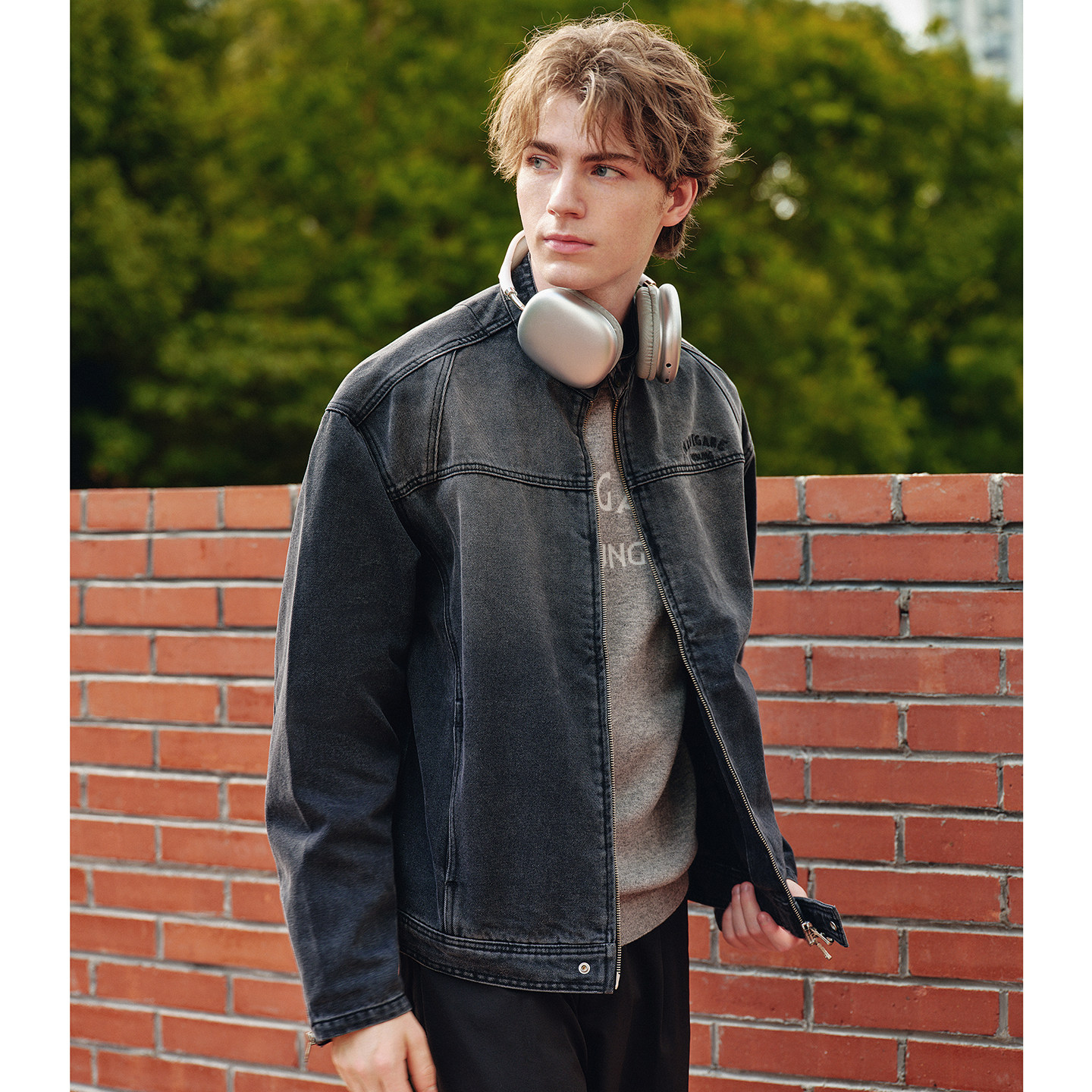 NAVIGARE意大利小帆船宽松水洗牛仔夹克衫男秋季新款休闲渐变外套