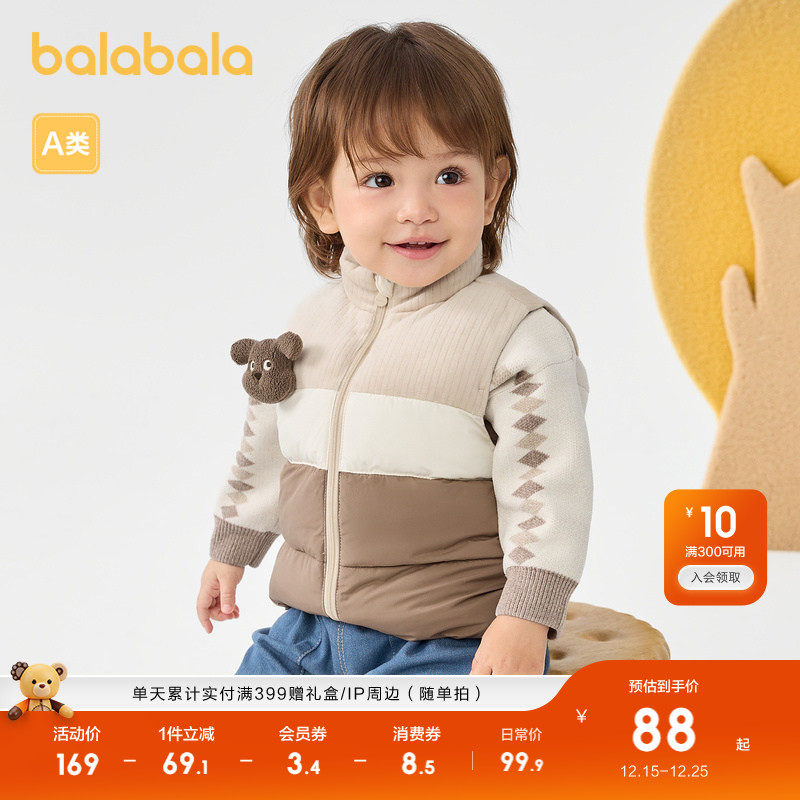 巴拉巴拉童装宝宝马甲女童外穿男童背心儿童秋冬装2025加厚保暖潮