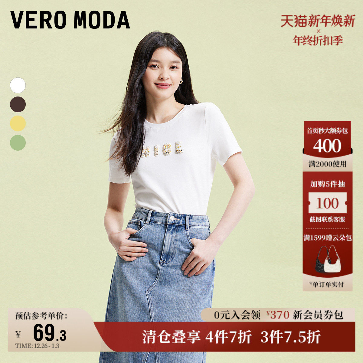 Vero Moda奥莱T恤女夏季新款休闲百搭时尚字母装饰棉质短袖上衣