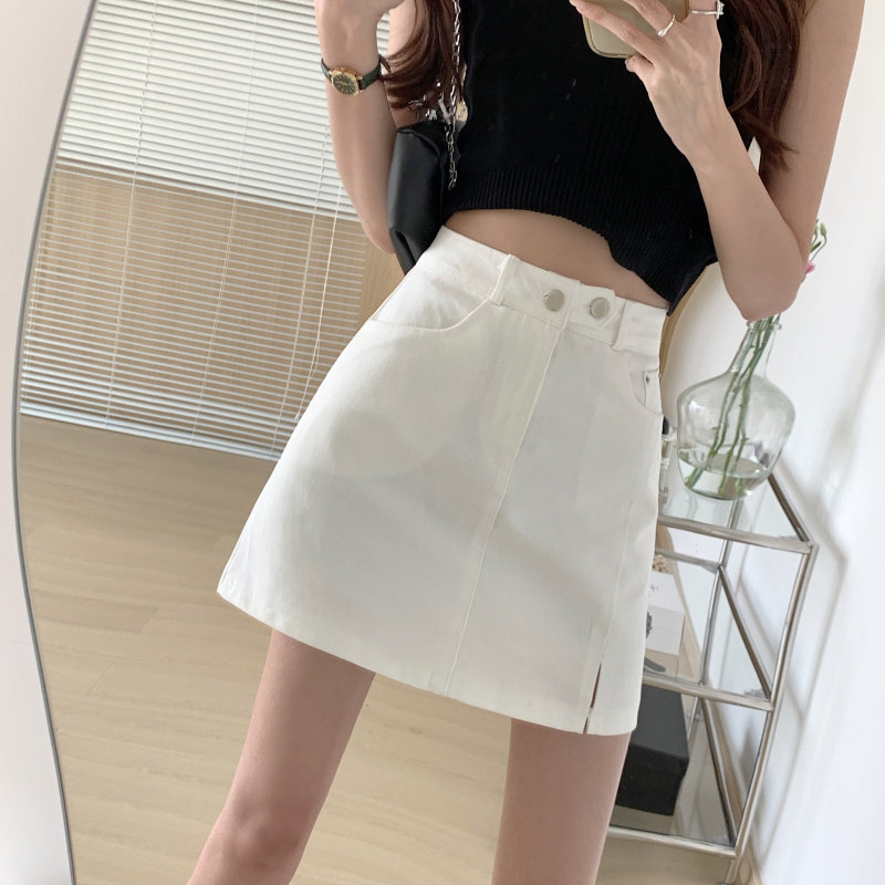 大码白色侧开叉牛仔短裙夏季ins超火显瘦包臂a字裙胖mm遮胯半身裙