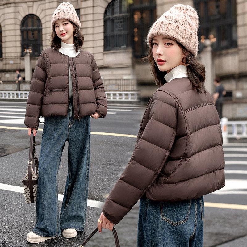 佟丽娅明星同款鸭鸭轻薄羽绒服短款女2025冬新款修身无领内胆保暖