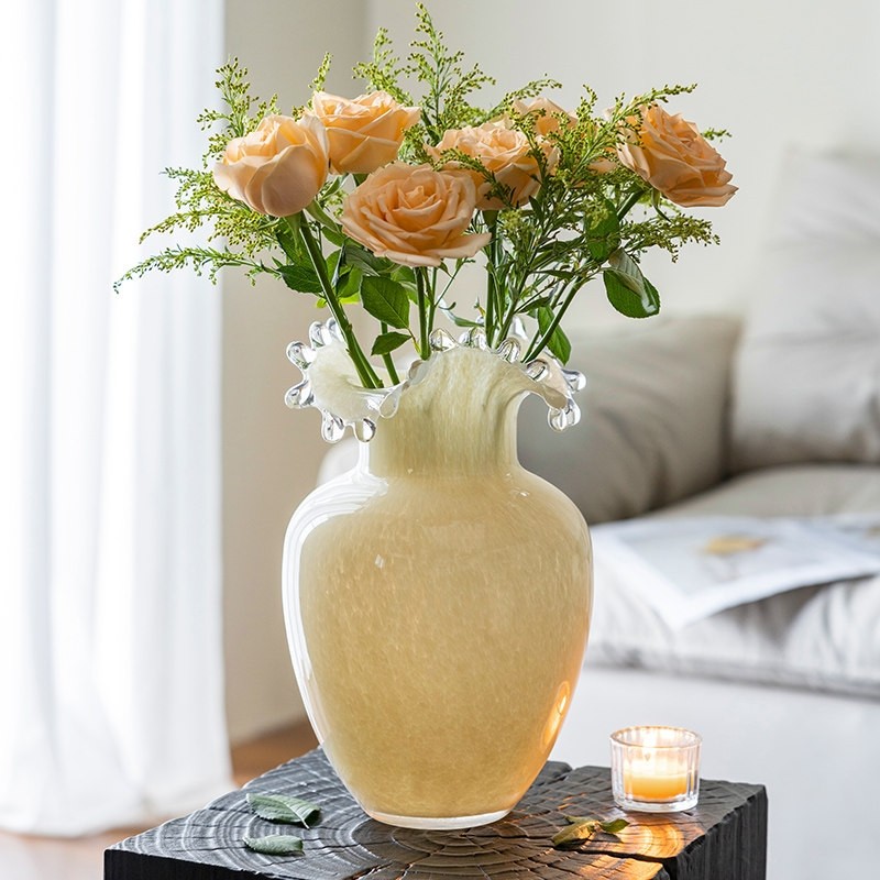 ins风网红花瓶摆件干花装饰品餐桌中古奶油花器鲜花玫瑰插花琉璃