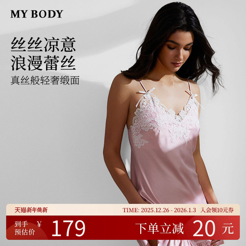 MYBODY商场同款法式吊带睡裙性感纯欲风蕾丝缎面高级感睡衣家居服