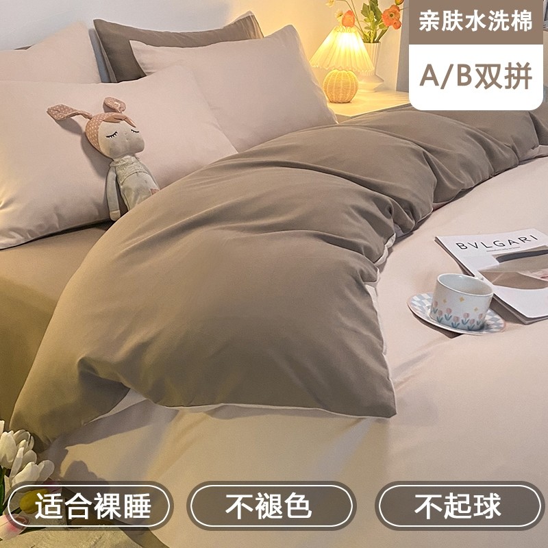 四件套床单被套被罩简约纯色学生宿舍水洗棉3三件套床笠床上用品4