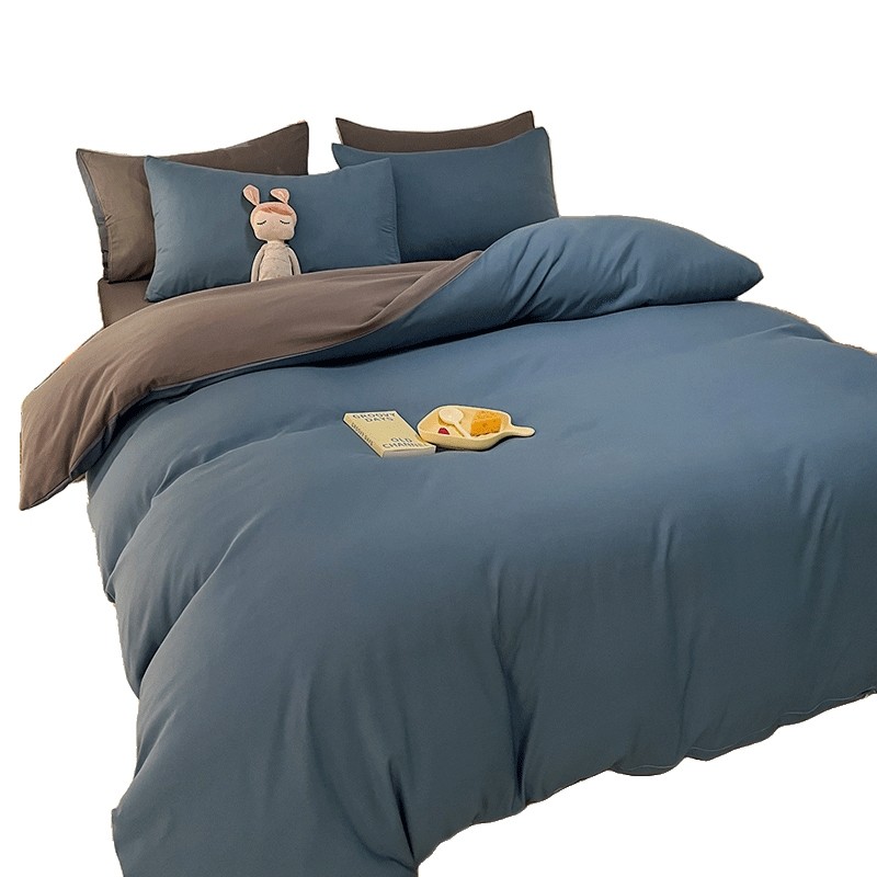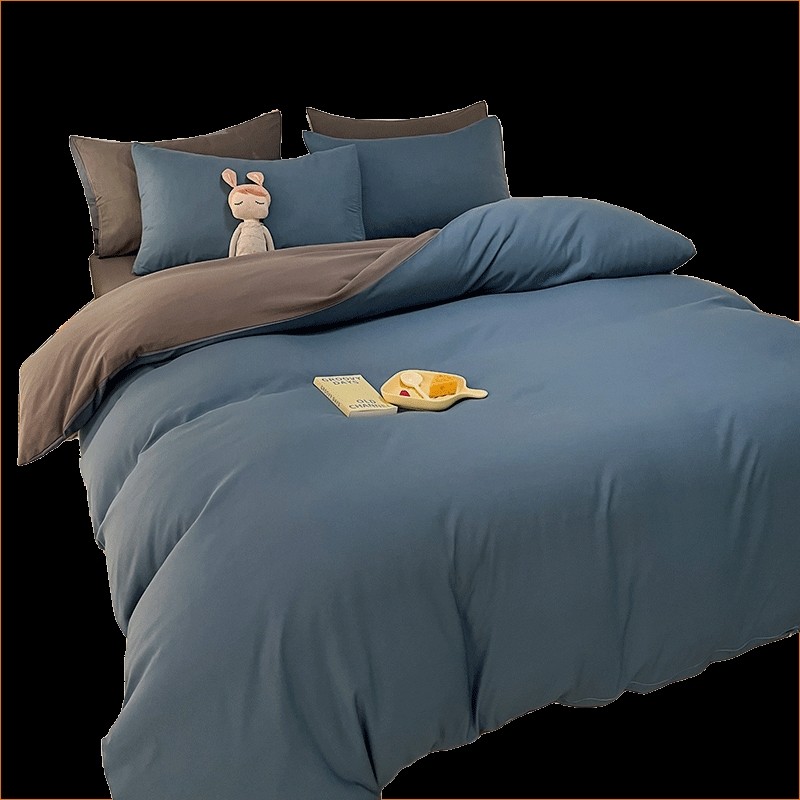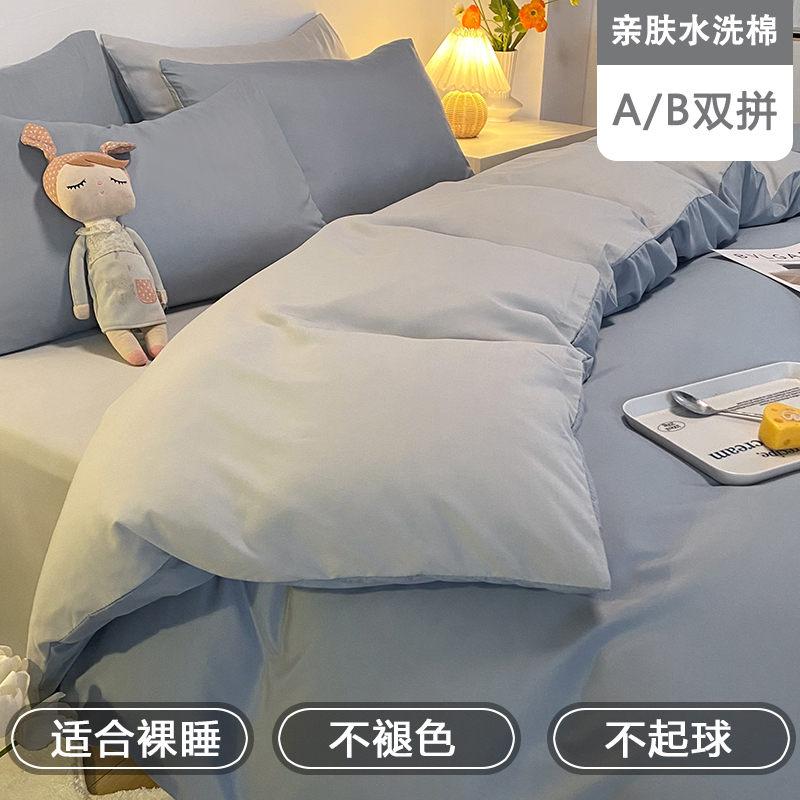 A类水洗棉双层纱四件套被罩非全棉纯棉床单人学生宿舍被套三件套