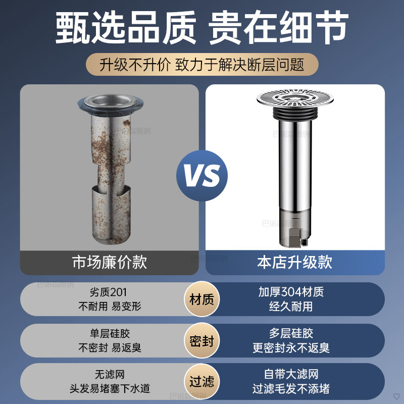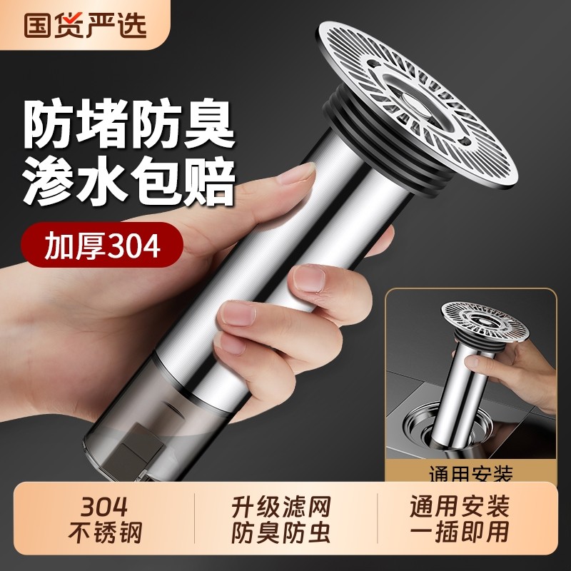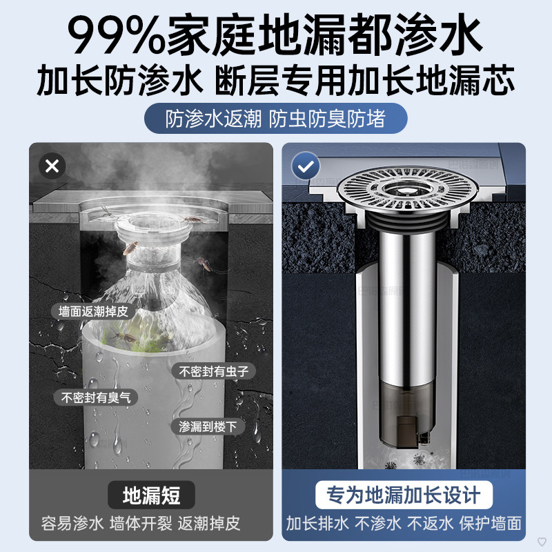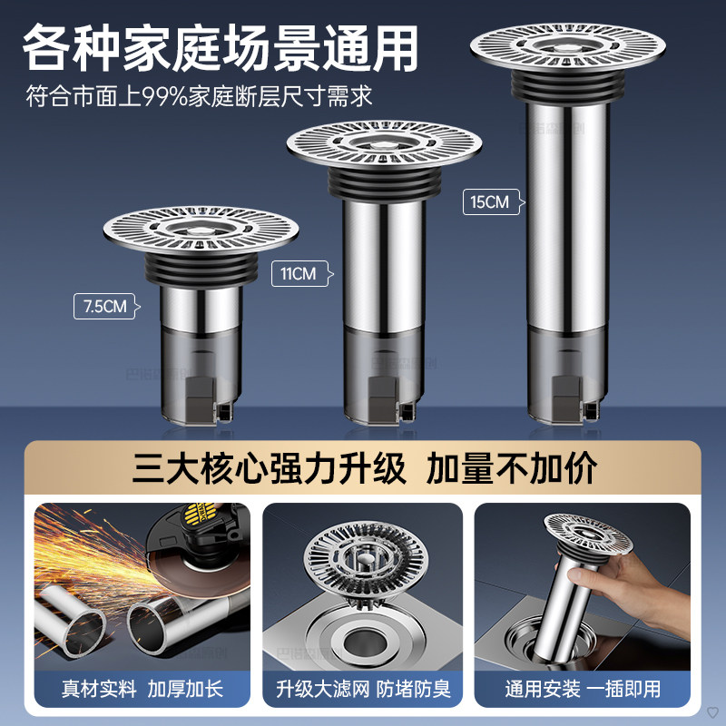 断层加长地漏芯卫生间下水浴室防臭防虫过滤网不锈钢延长管排水