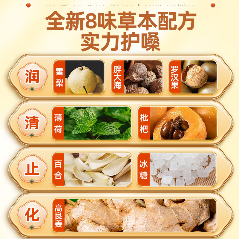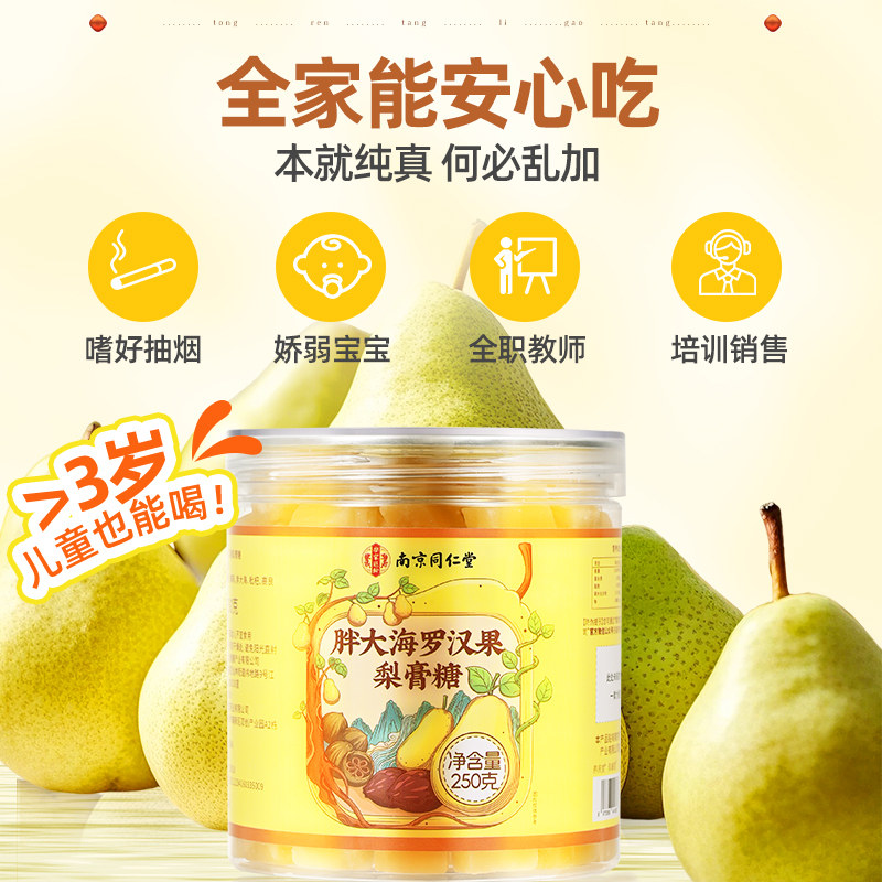 同仁堂百草梨膏糖梨膏糖化痰止咳润肺护嗓子疼手工正品薄荷润喉糖