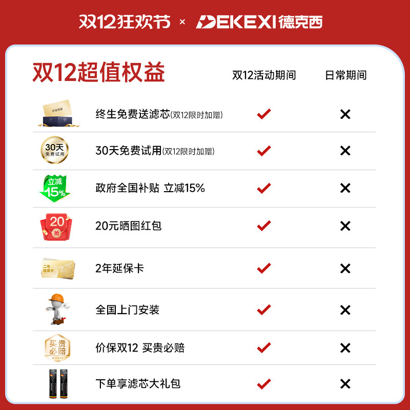 政府补贴德克西净水器家用直饮净水机厨房自来水过滤器超滤净化器
