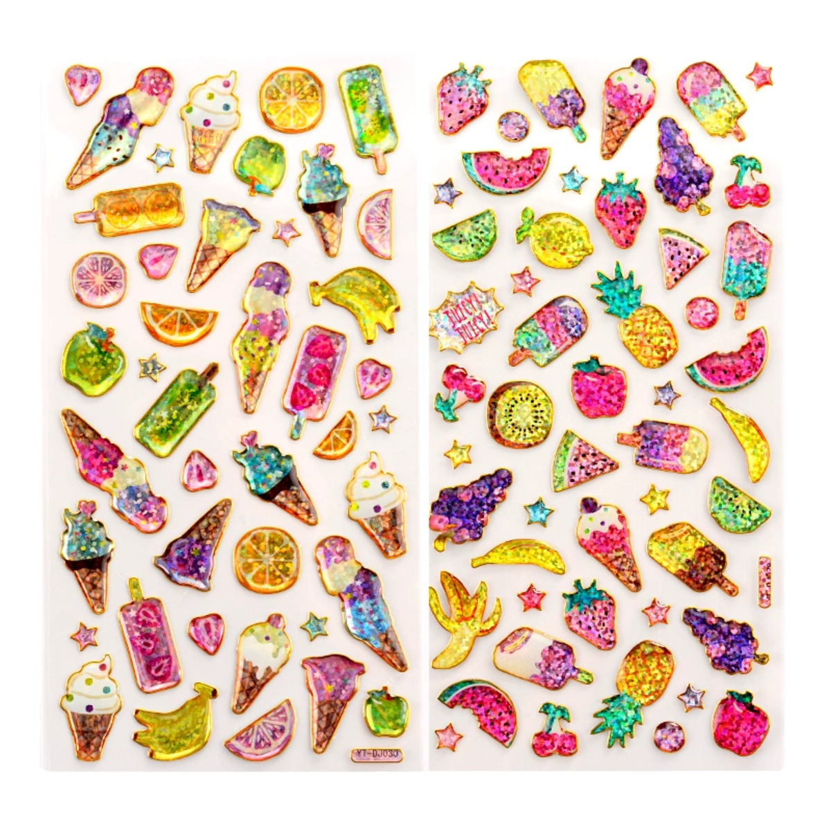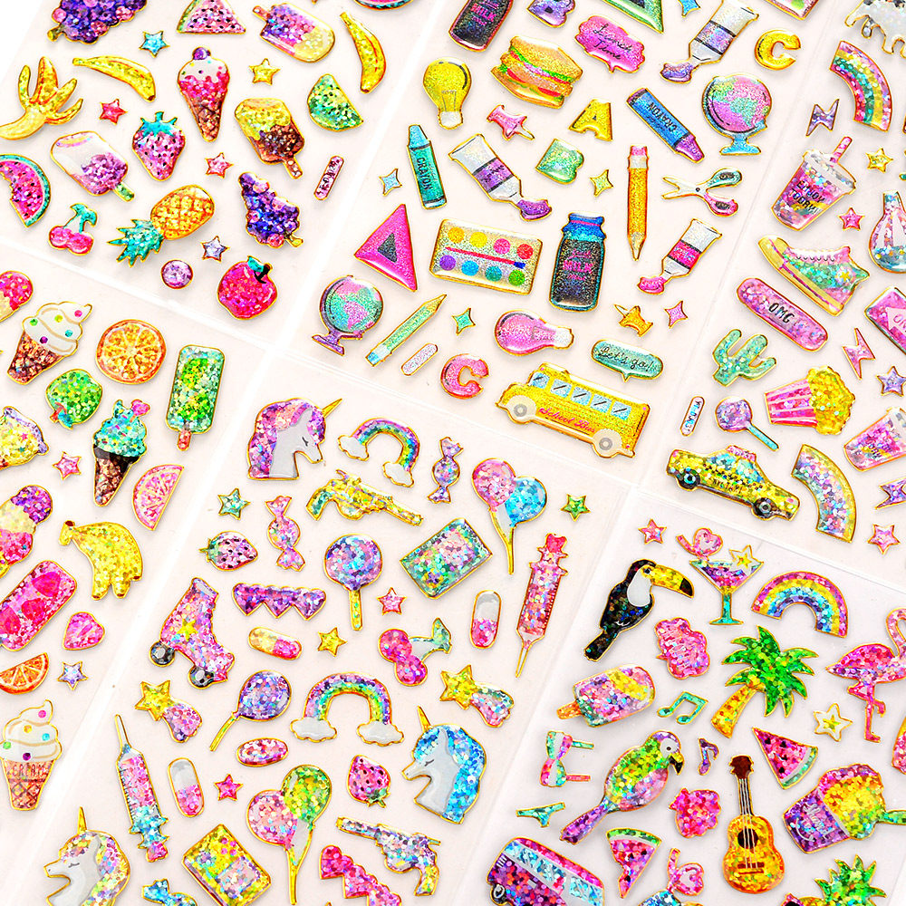 儿童闪亮烫金镭射水晶贴纸女孩冰淇淋水果水杯手账咕卡装饰粘贴画