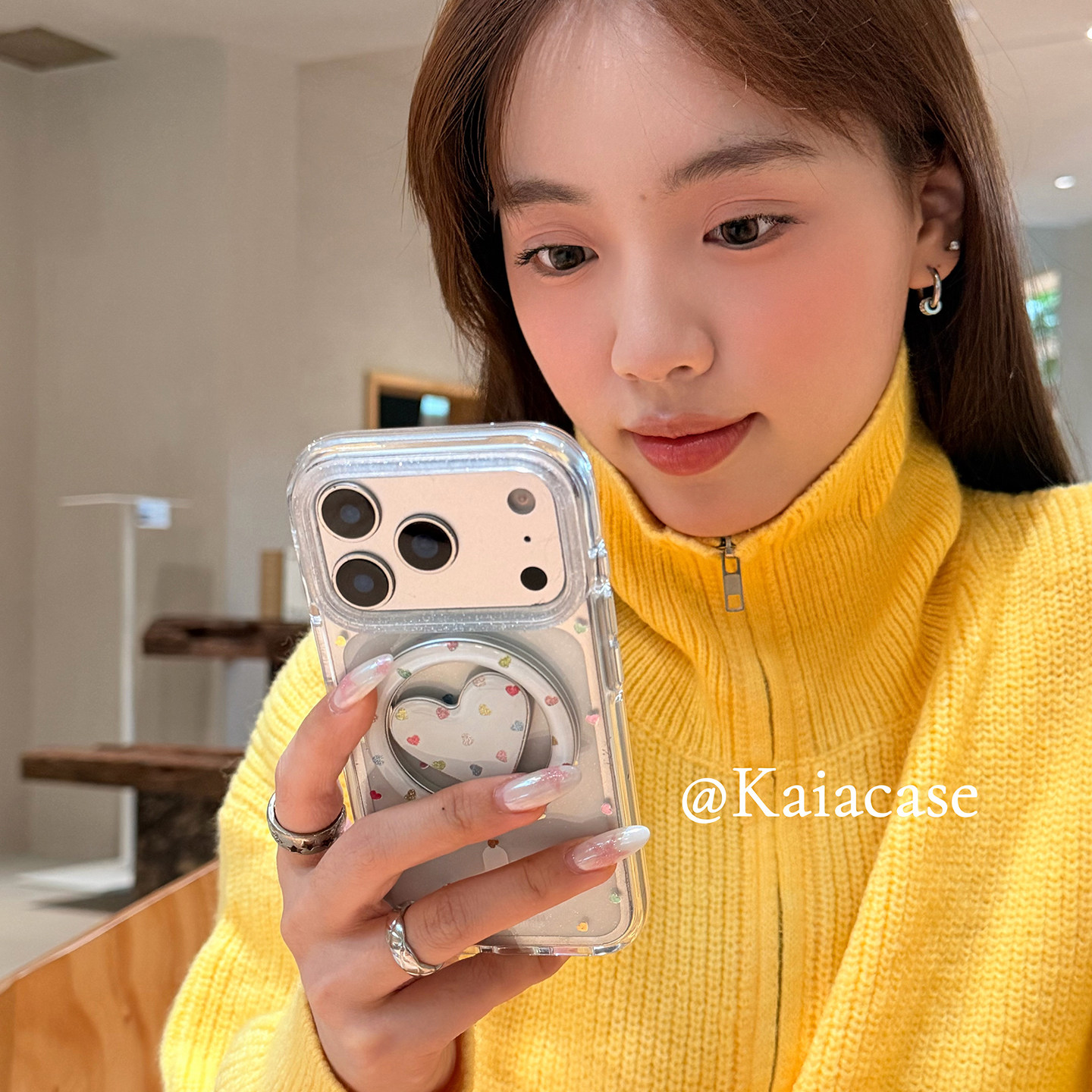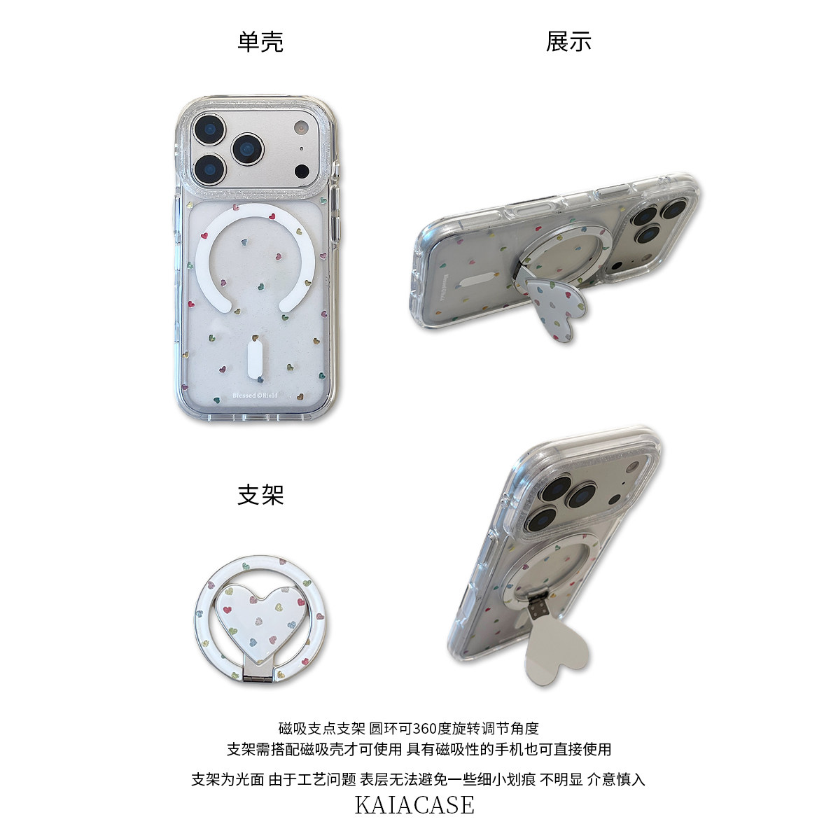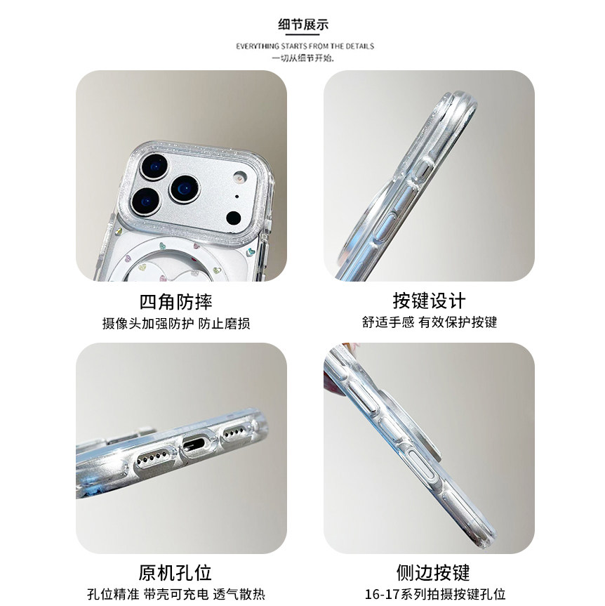 kaia韩风ins镭射彩色爱心适用苹果17promax手机壳iphone16pro新款15女14pro磁吸支架15pro透明全包防摔手机套