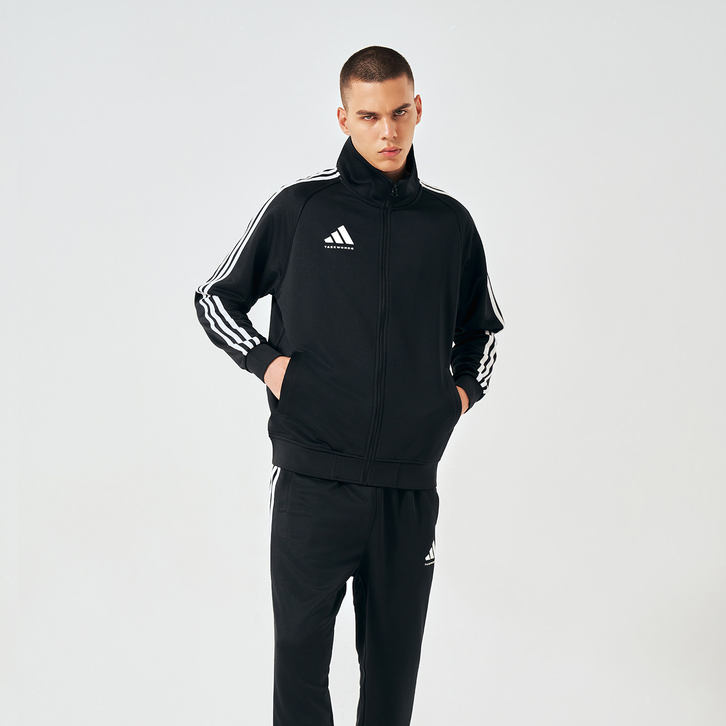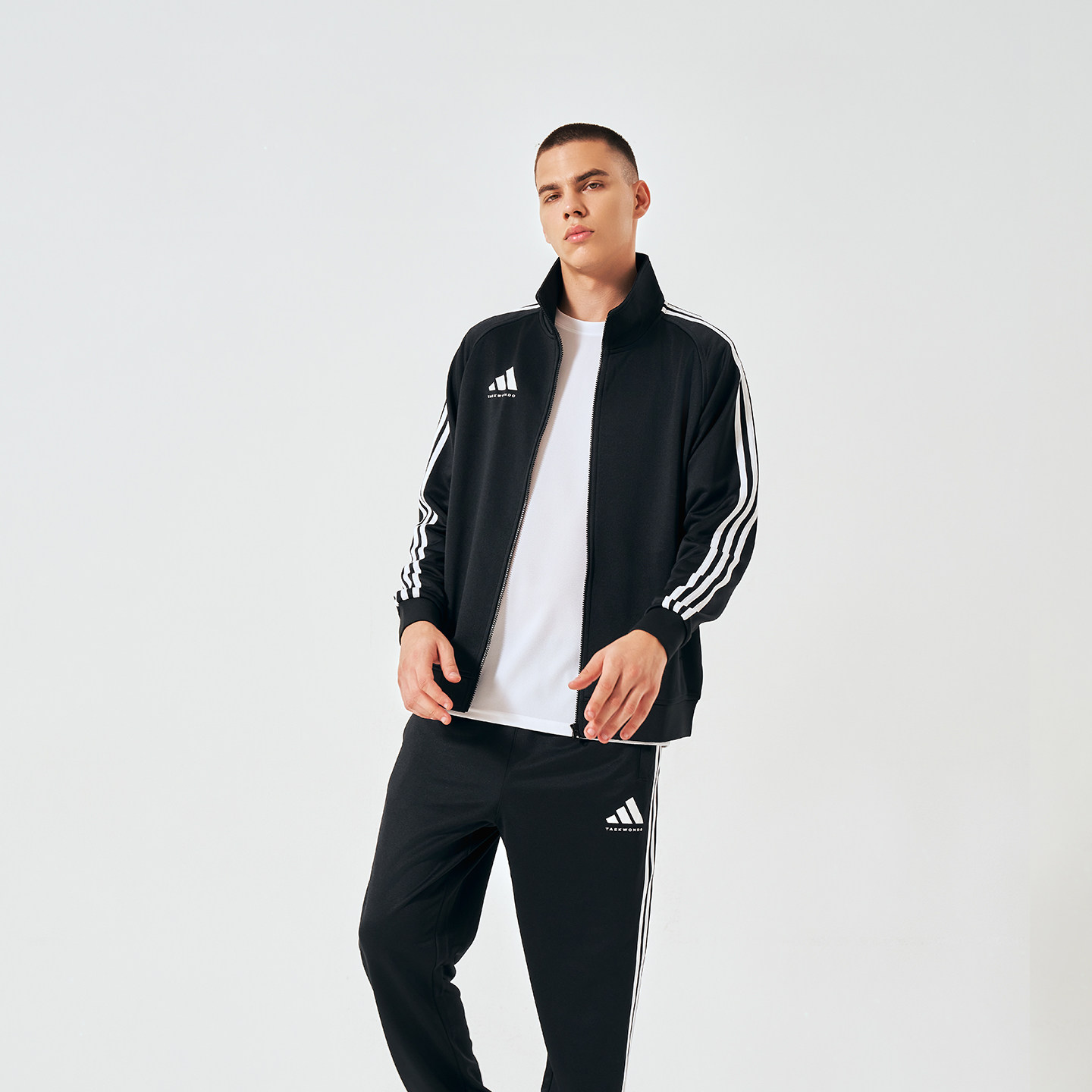 Adidas/阿迪达斯男子夹克秋冬休闲穿搭经典三条纹针织立领外套