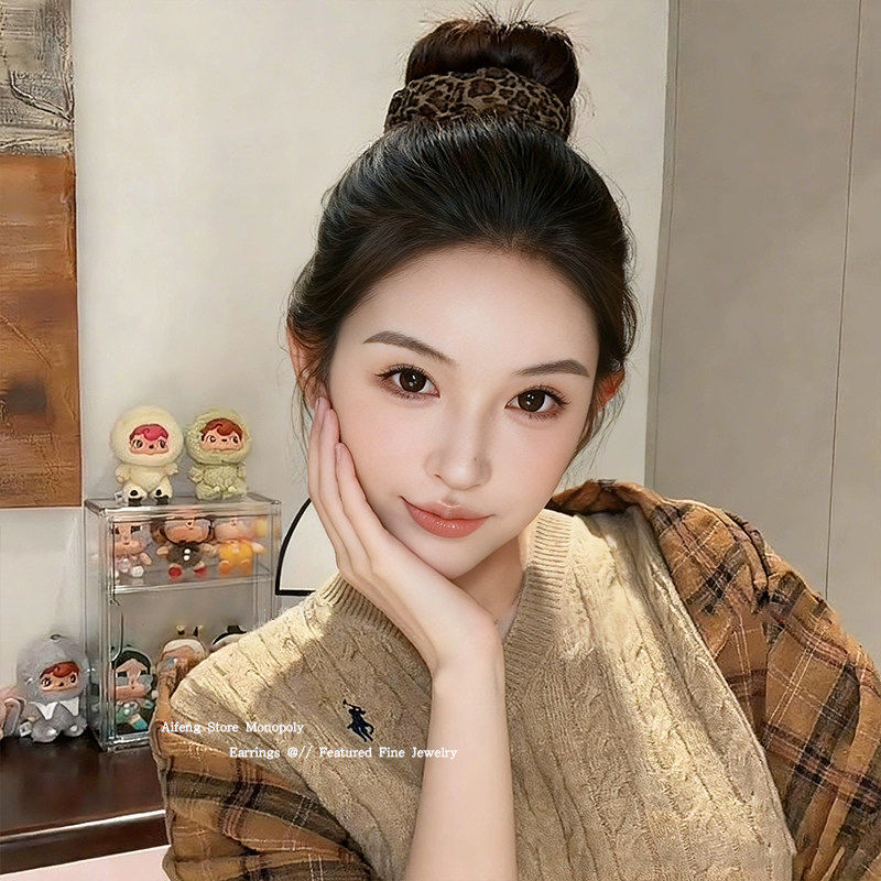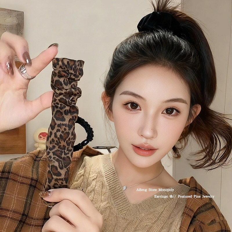 懒人高马尾不塌啪啪圈头绳女高级感复古豹纹多功能盘发神器头发圈
