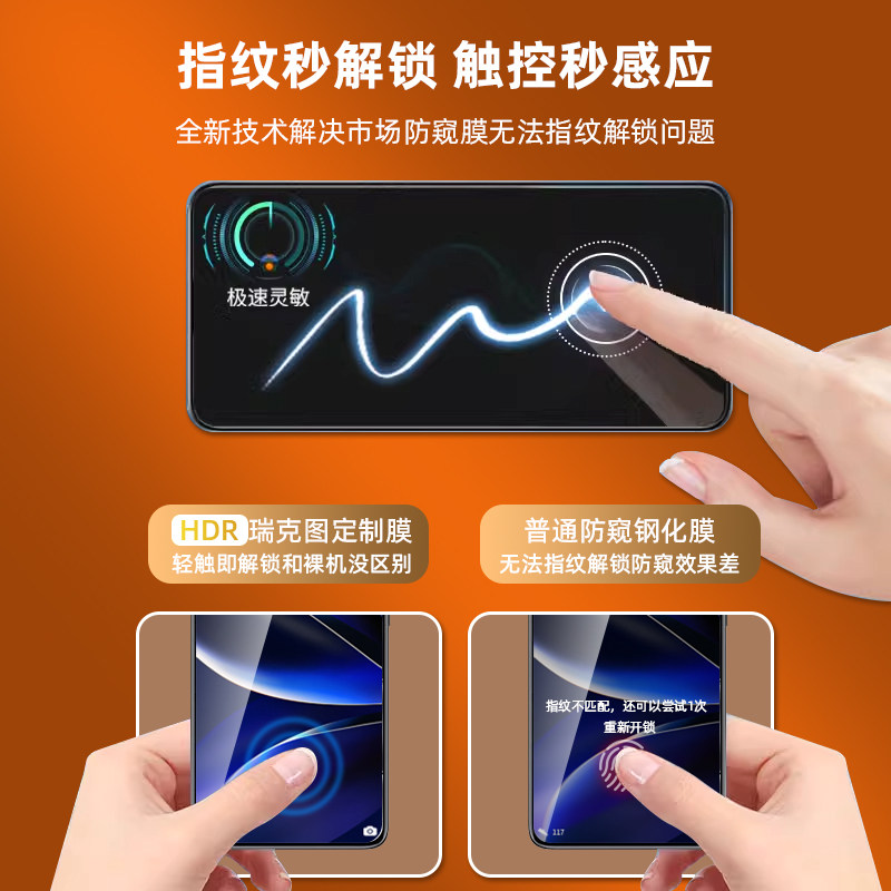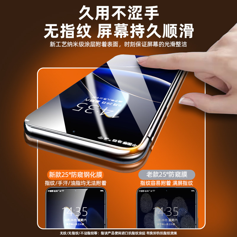 升级指纹秒解版 新25°真防窥膜 高透光无色