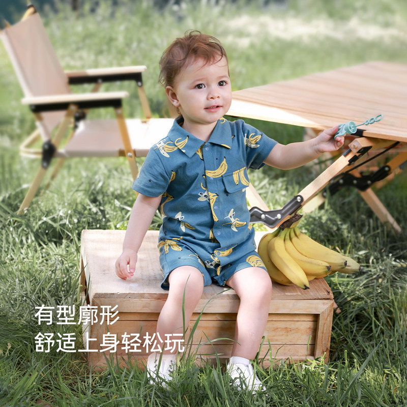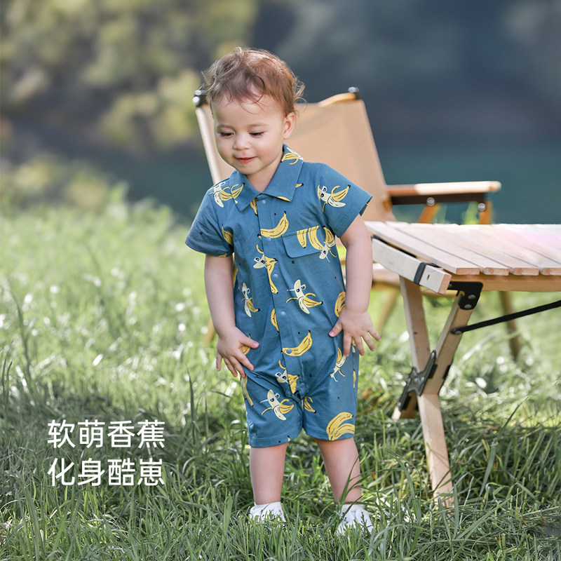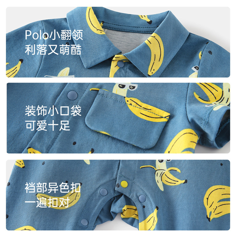 babylove婴儿连体衣夏季短袖纯棉翻领洋气哈衣爬服宝宝外出服