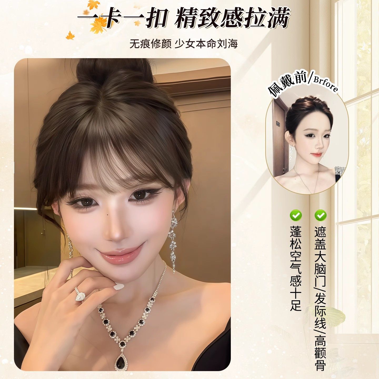 许妍同款法式刘海假发女自然前额增发量蓬松真发无痕齐刘海假发片