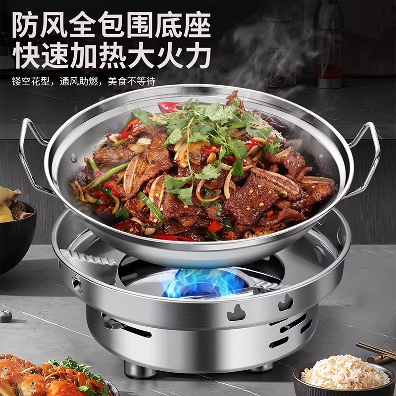 不锈钢干锅锅具酒精炉子小火锅家用一套家用固体商用不粘锅防风
