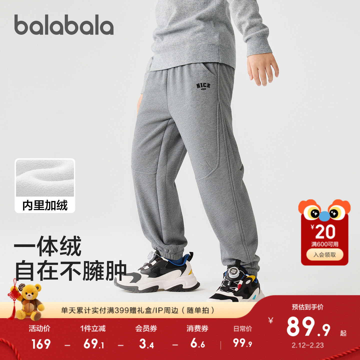 【balaOne】巴拉巴拉童装儿童加绒运动裤子男童女童长裤2025冬季