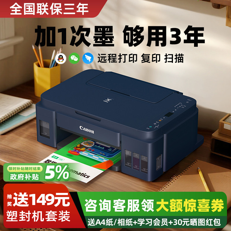 佳能G3811家用小型墨仓式连供彩色打印机复印扫描一体手机无线学生照片办公专用