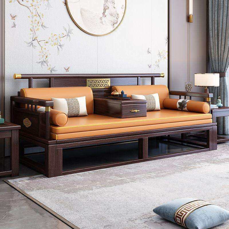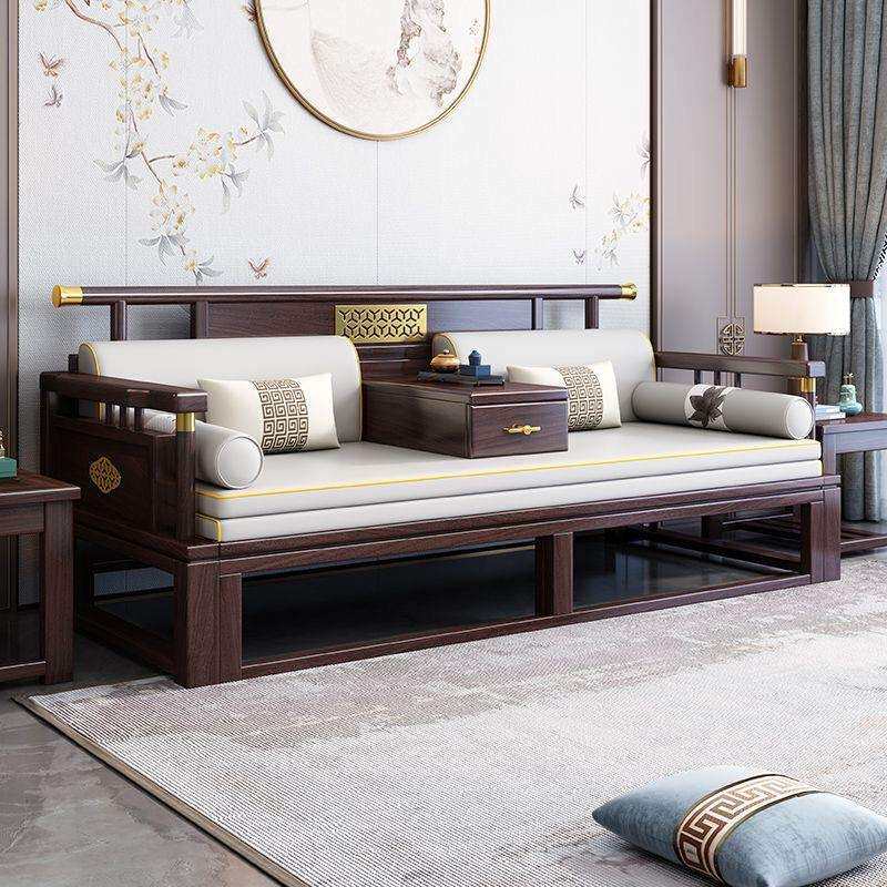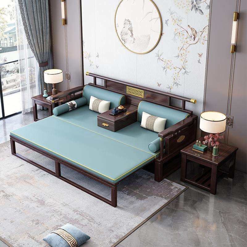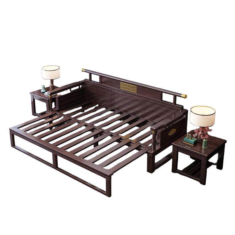 新中式实木罗汉床全实木推拉床现代简约风客厅可伸缩乌金木沙发床