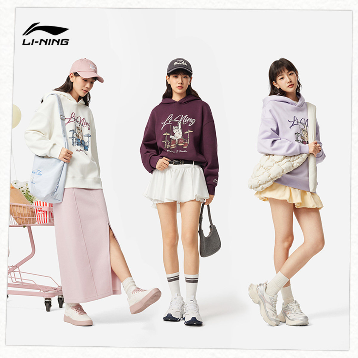 李宁加绒卫衣女款官方冬季新款宽松连帽上衣休闲保暖针织运动服女