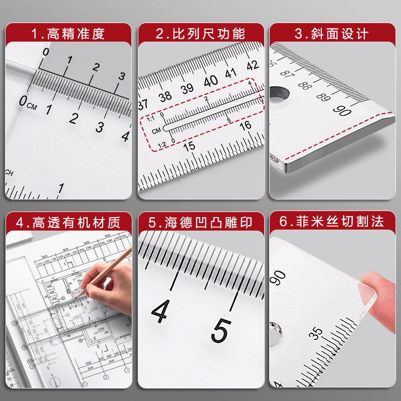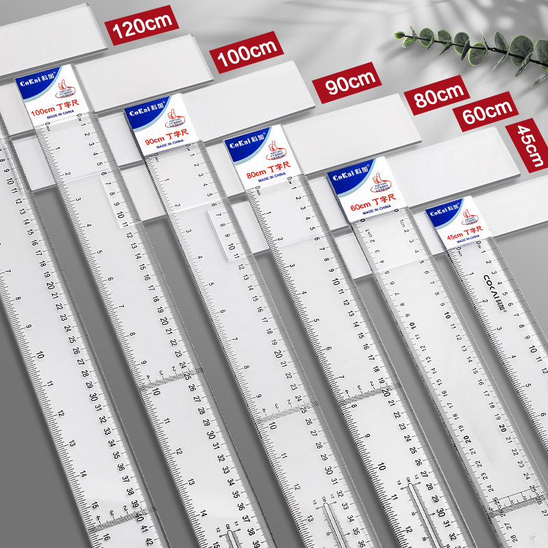 丁字尺制图专用机械工程土木绘图尺子T型尺直角尺90度t字尺45cm60cm80cm90cm100cm120cm有机塑料透明玻璃长尺