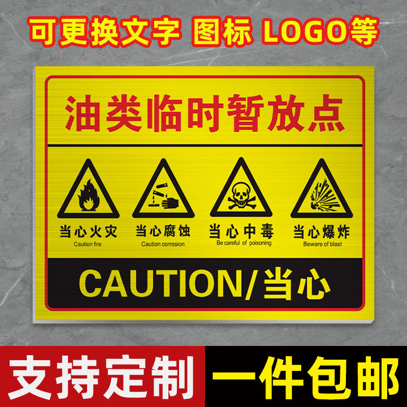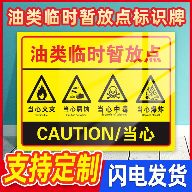 油类临时暂放点标识牌 厂区仓库柴油机油暂存场所严禁烟火当心爆炸腐蚀当心中毒火灾提示牌安全生产警示牌子