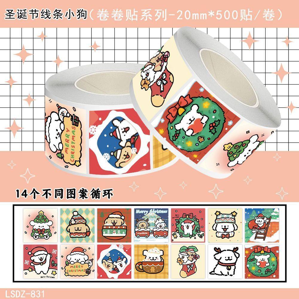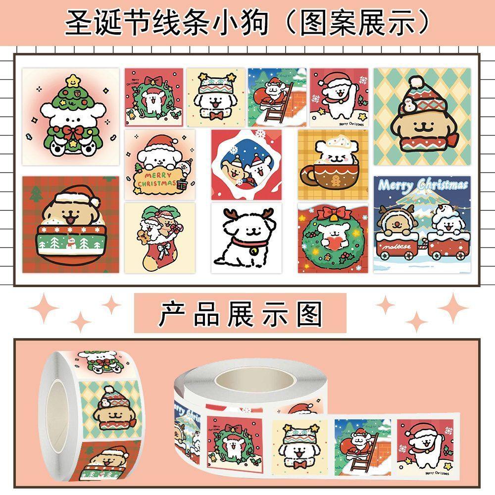 圣诞节线条小狗卷卷贴可爱圣诞氛围表情包装饰水杯防水贴画封口贴