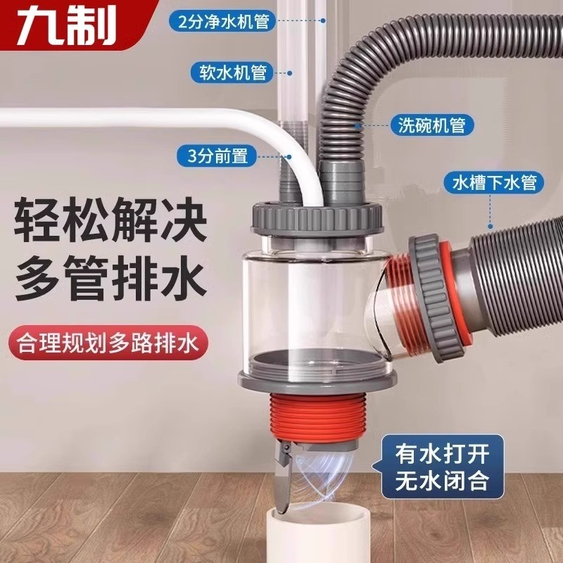 厨房下水管三通洗菜盆净水器洗碗机排水道三头通防返臭神器洗衣机