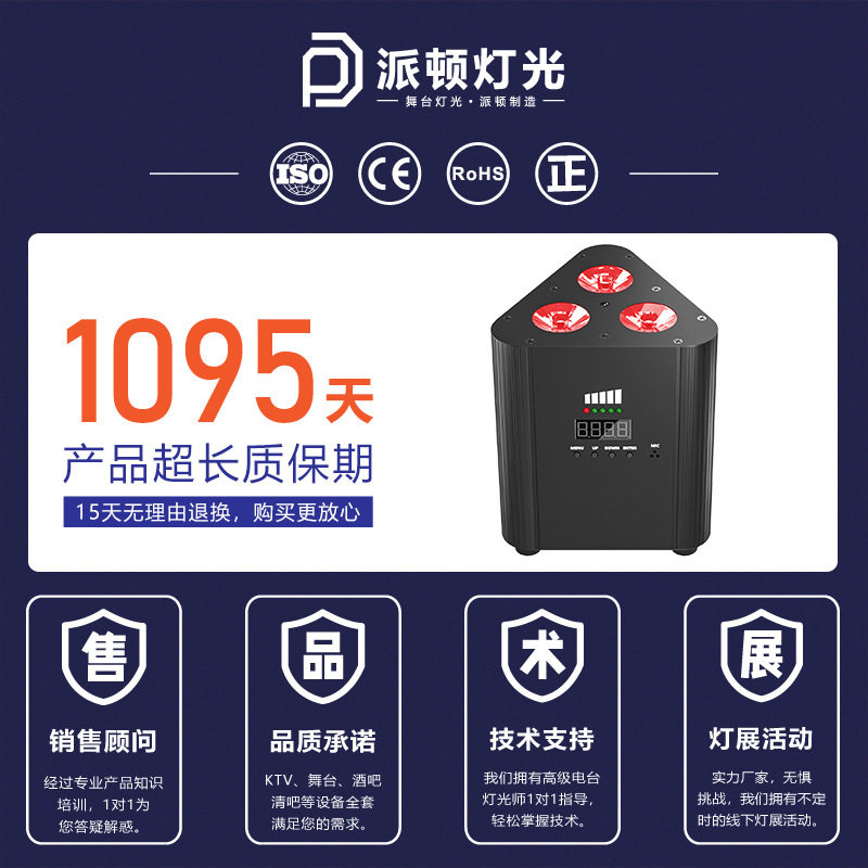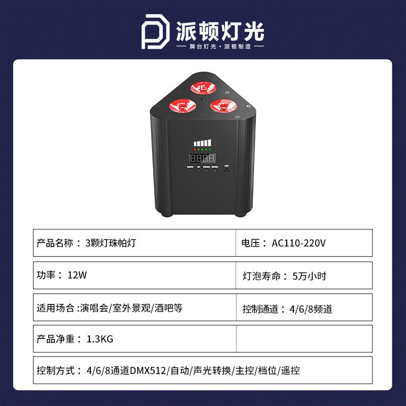 派顿跨境专供3颗灯珠无线电池帕灯LED充电染色帕灯WiFi遥控染色灯