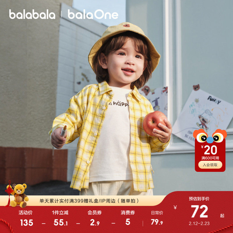 巴拉巴拉童装宝宝衬衫男童长袖2025新款秋装格子儿童外套学院风潮