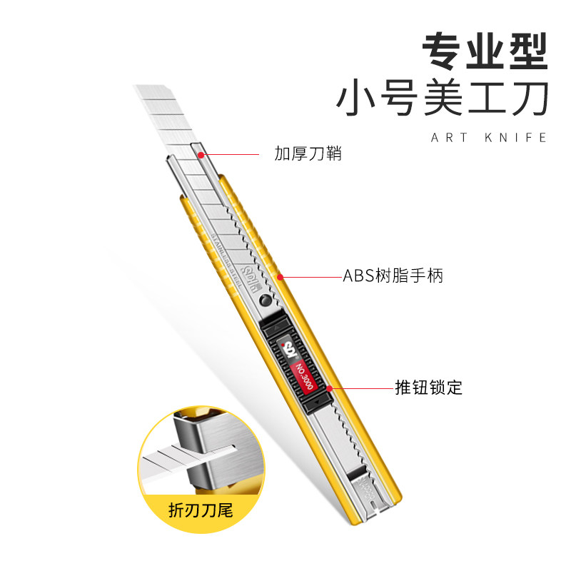 手牌3000C美工刀9mm小号自动锁定防晃动壁纸墙布裁纸刀贴膜工具工业办公用品学生手工模型切割刀片文具裁纸刀