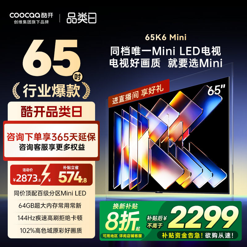 【补贴20%】创维酷开65K6 Mini家用液晶电视机2025新款以旧换新