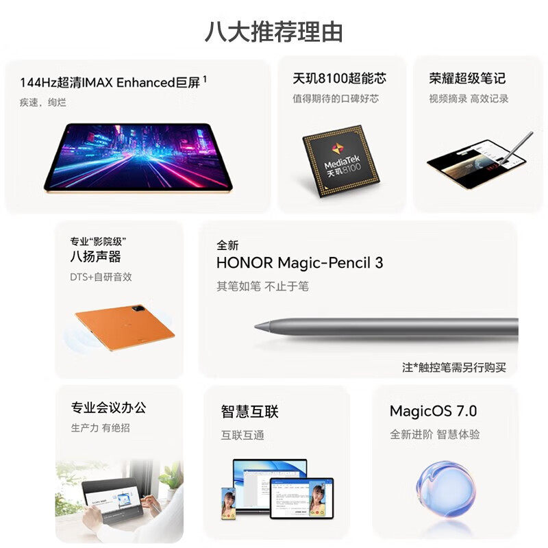 荣耀 平板V8 Pro12.1英寸官方正品pad学习办公144HZ护眼平板电脑