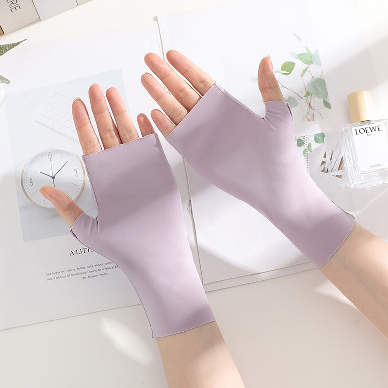 2024新款冰丝半指手套女春夏季漏指骑行防晒手套男开车钓鱼露指A