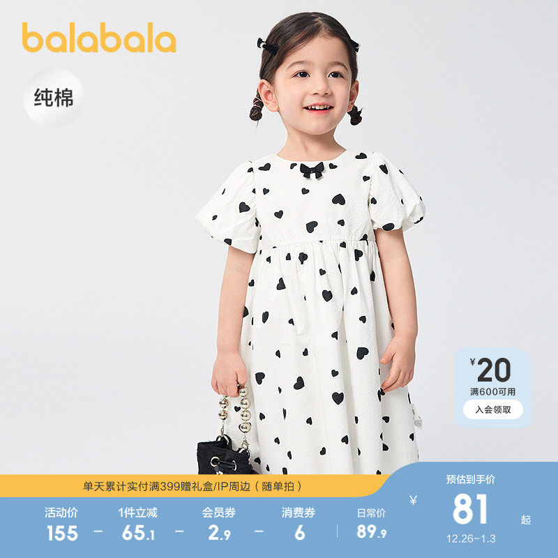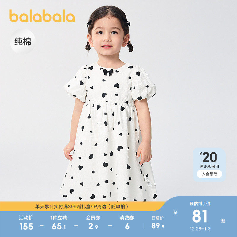 巴拉巴拉童装儿童连衣裙女童高腰公主裙泡泡袖夏季A字裙纯棉裙子