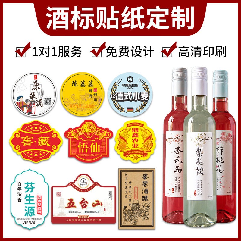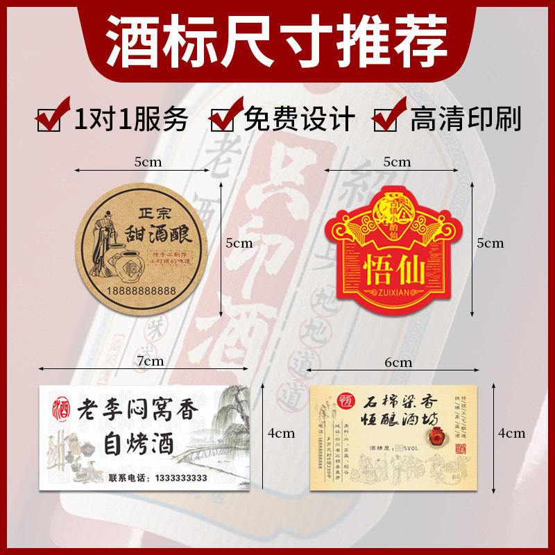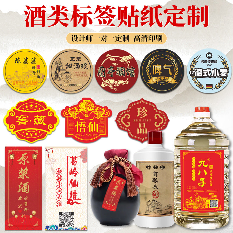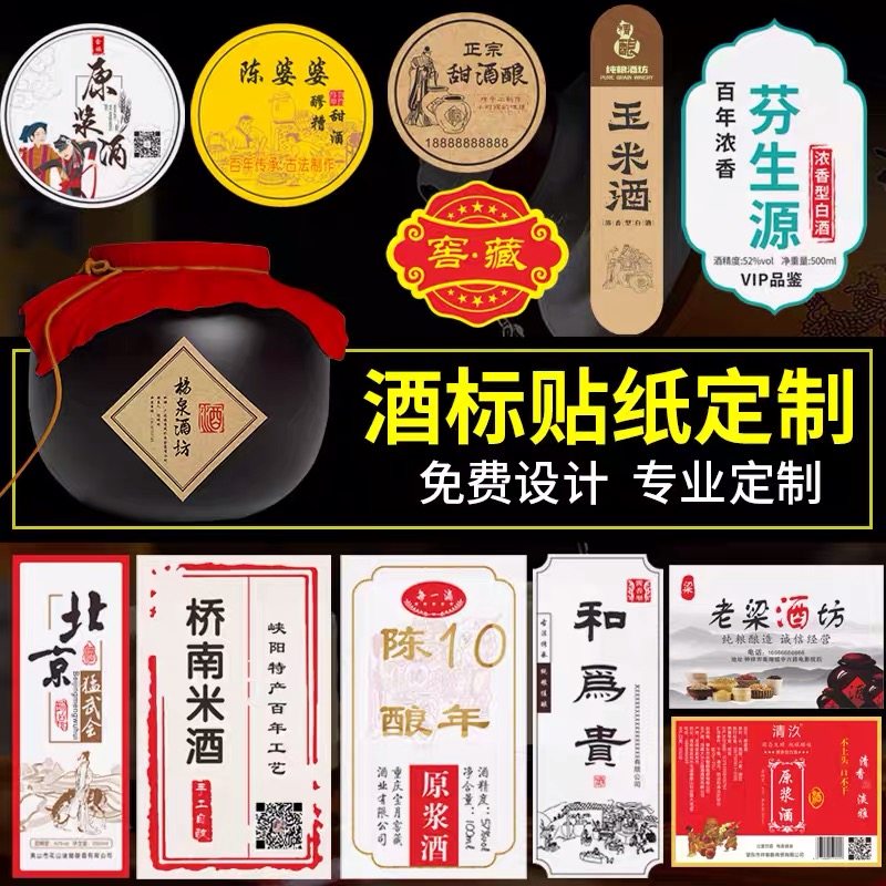 酒标贴纸定制桑葚农家自酿酒分装瓶桶装标签设计青梅酒不干胶价格标签婚礼果酒养生土烧原浆白米酒封口贴转移