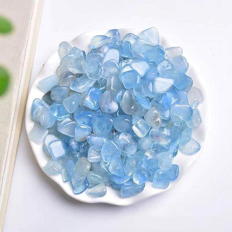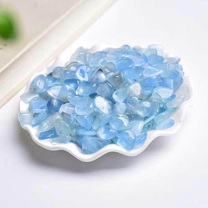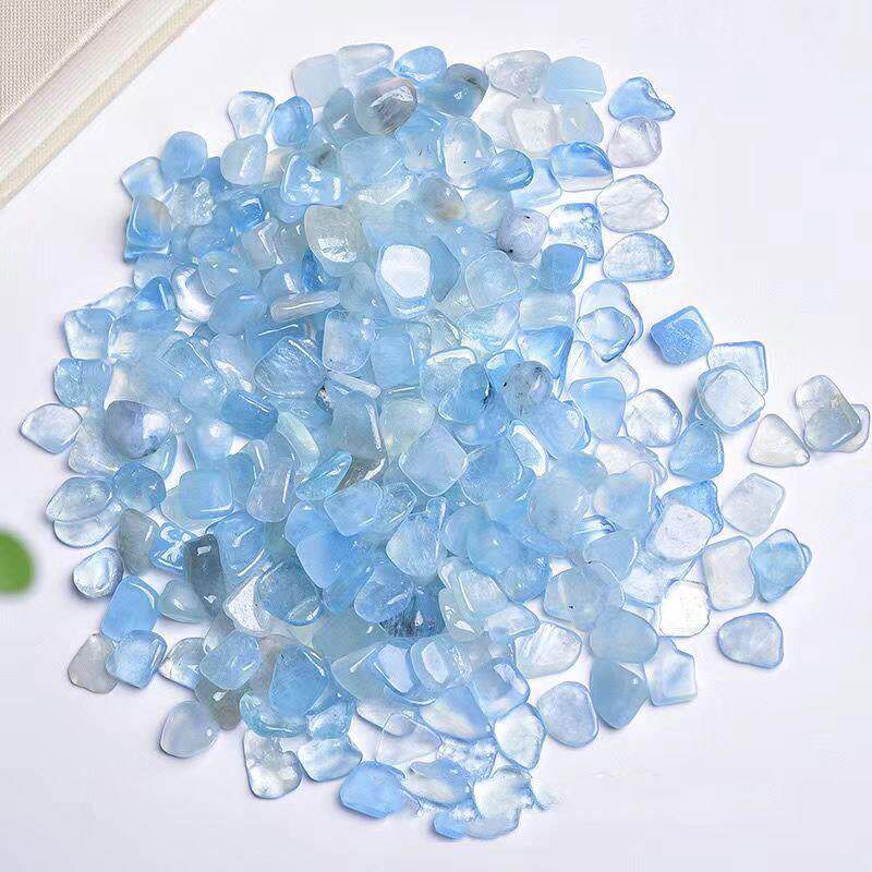 天然海蓝宝碎石摆件消磁石鱼缸花盆造景石房屋装修材料不规则碎石