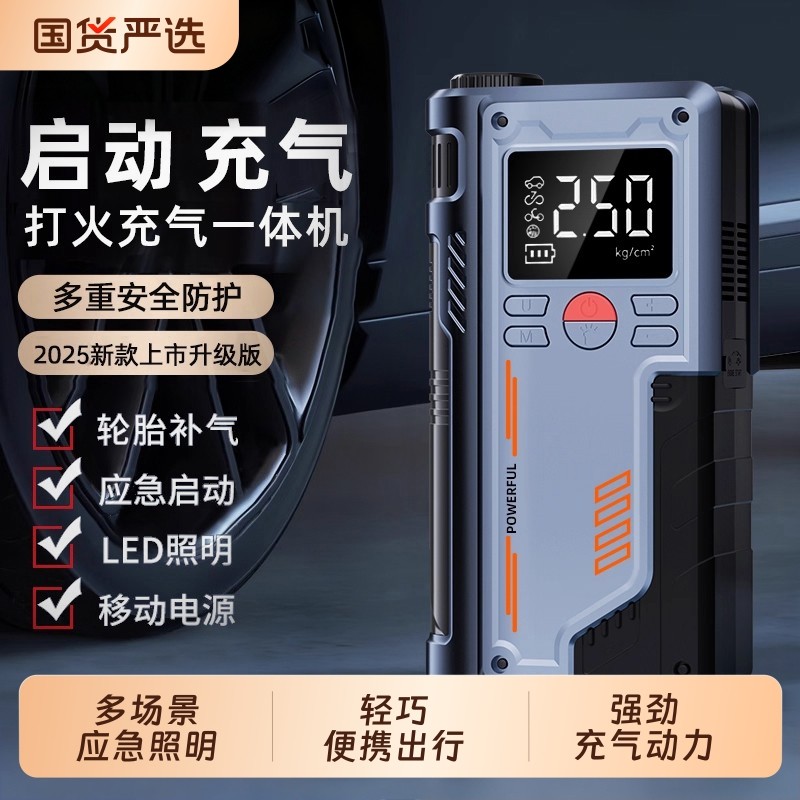 汽车应急启动电源充气泵一体机12v车载电瓶紧急强搭电宝打火神器