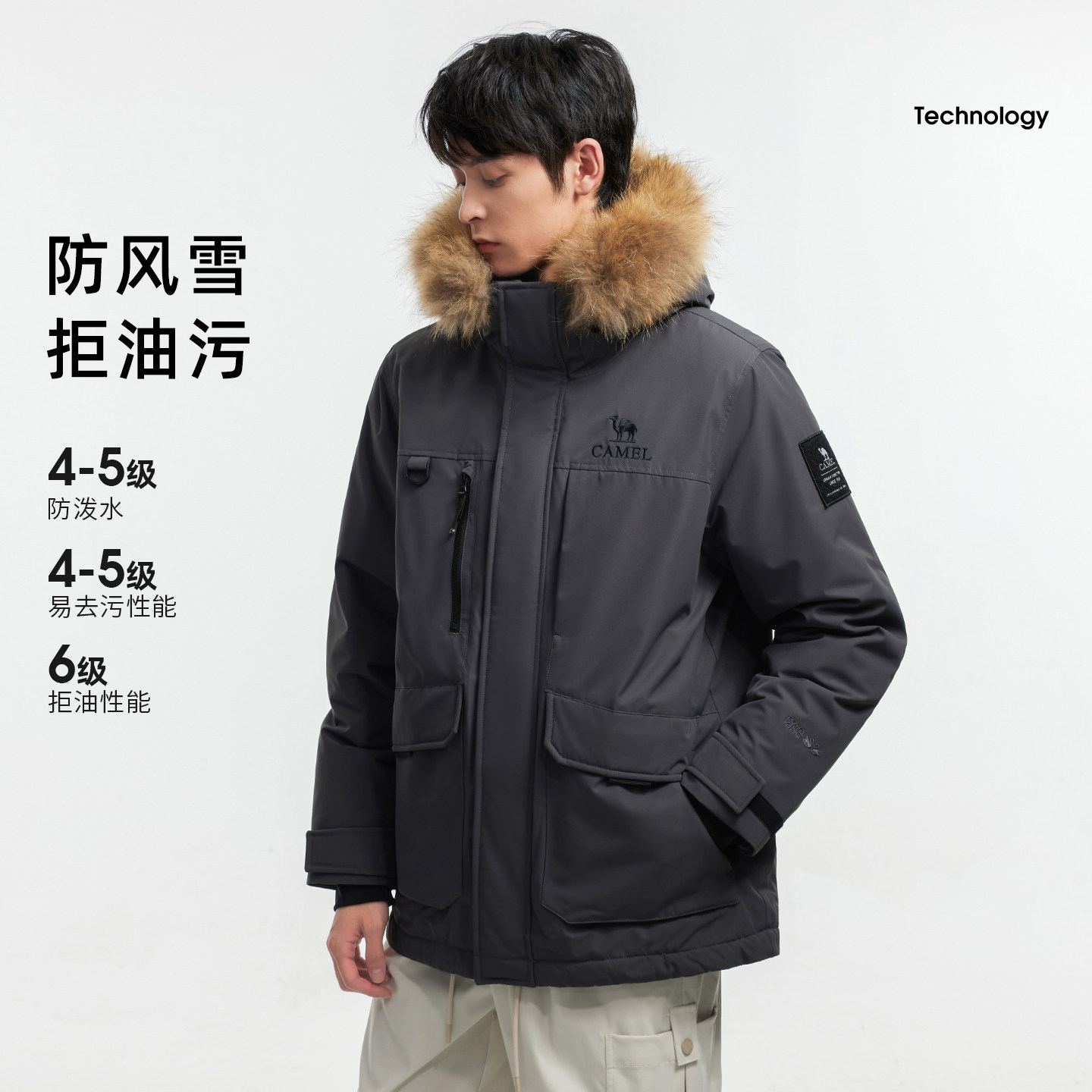 骆驼男士派克服2026户外鹅绒羽绒服男冬季保暖短款工装外套女