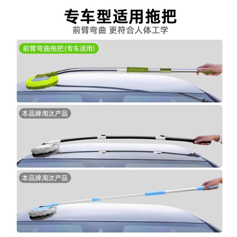 徕本弯杆洗车拖把不伤车漆软毛伸缩车用汽车刷子专用除尘掸子神器