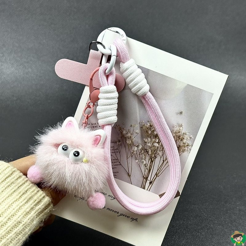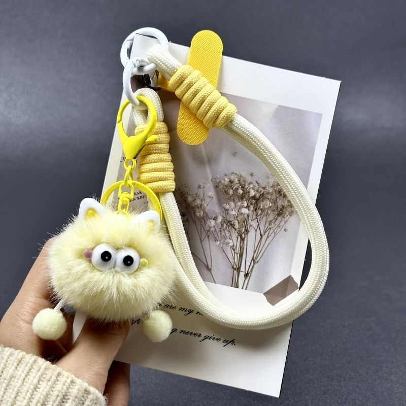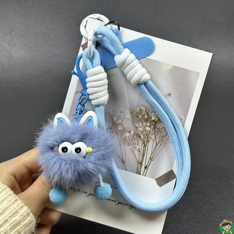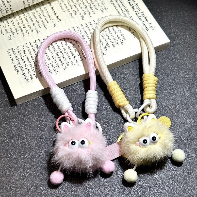 多巴胺卡通毛绒煤球瞪眼挂饰钥匙扣手绳通用手机挂件公仔挂绳挂链手机链挂手腕带垫片夹片轻奢小众精致高级感