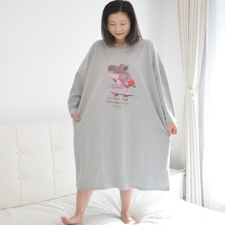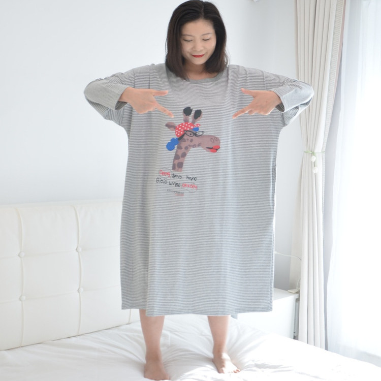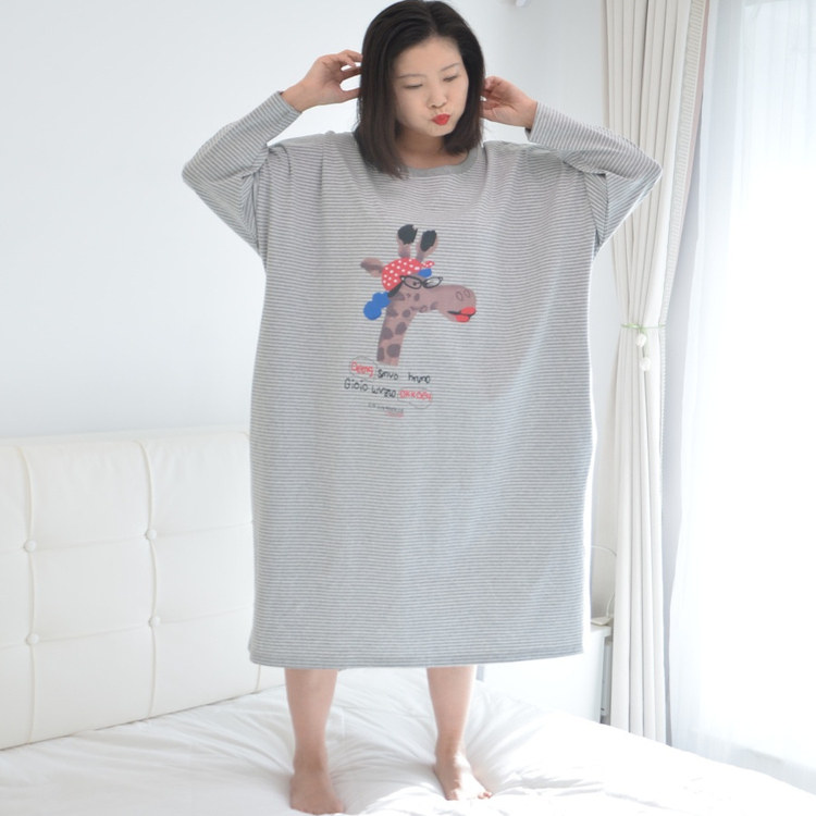 200斤卡通长颈鹿河马加大码长袖睡裙女胖MM春秋薄款纯棉家居睡衣