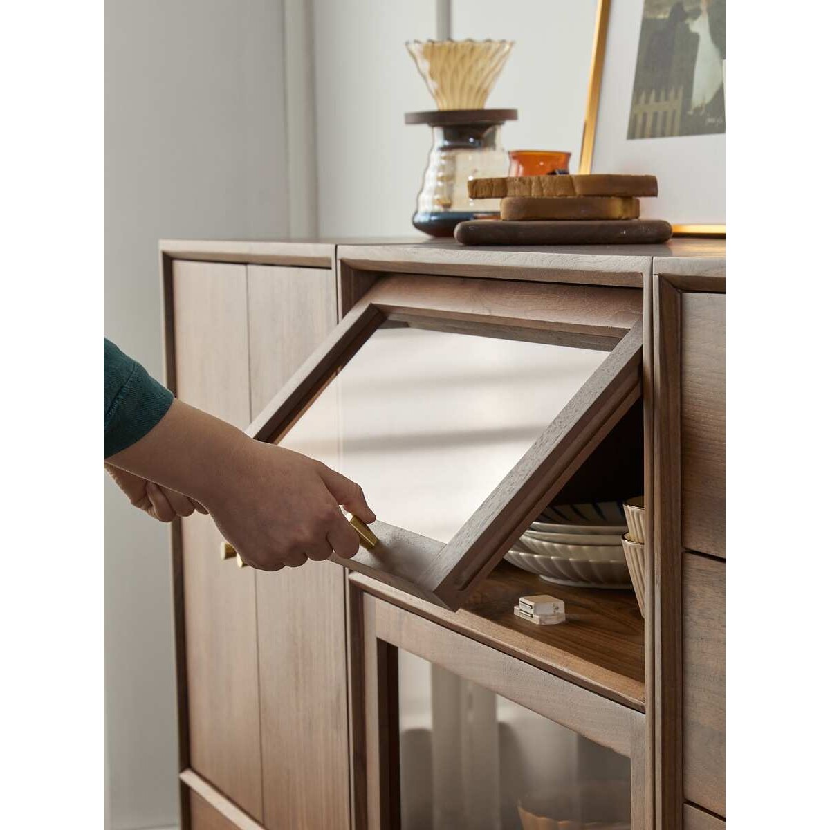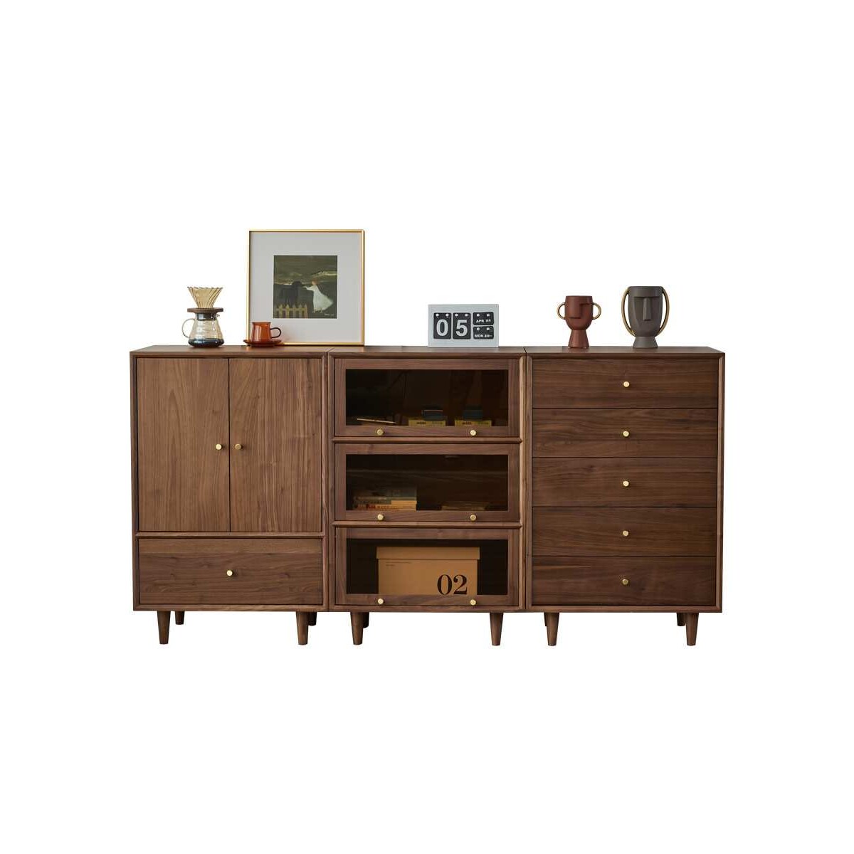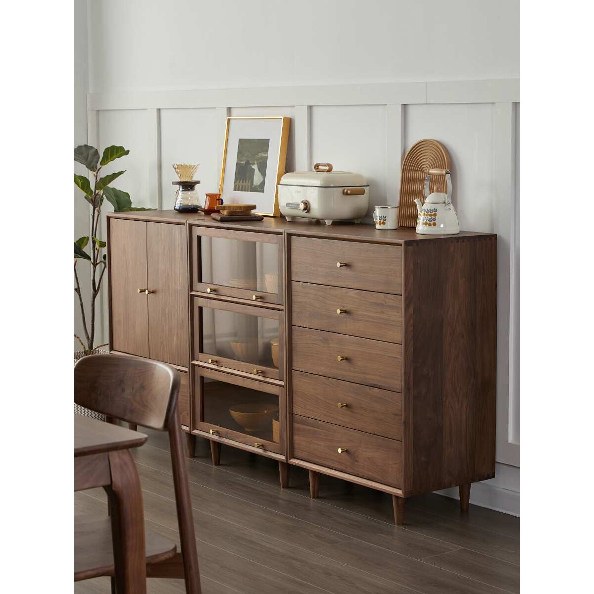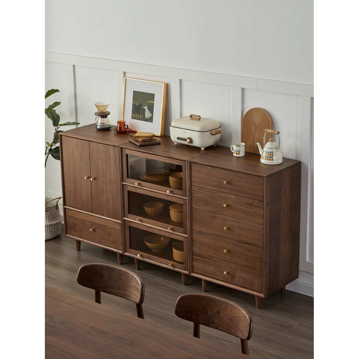 黑胡桃木实木五斗柜收纳柜日式客厅樱桃木玻璃翻门柜餐边柜组合
