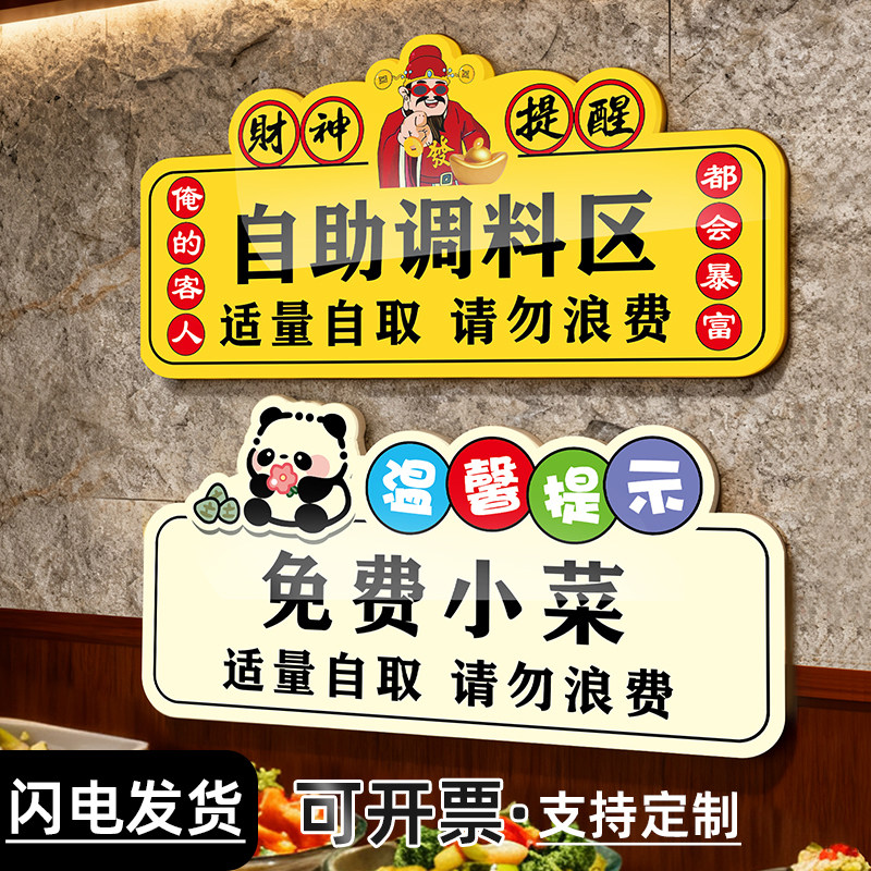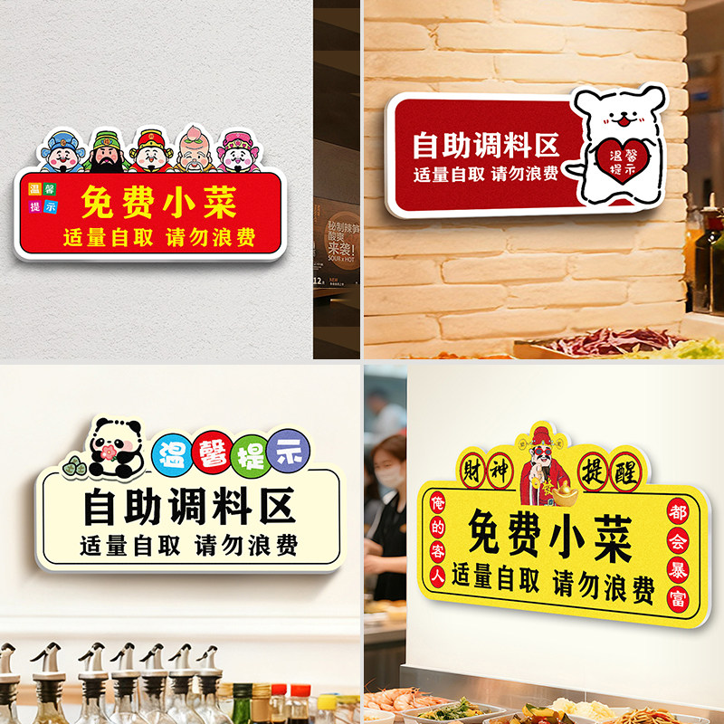 免费小菜提示牌自助小料台标识免费自助区调料区餐具已消毒请自取自助茶水区收银处非工作人员禁止入内指示牌