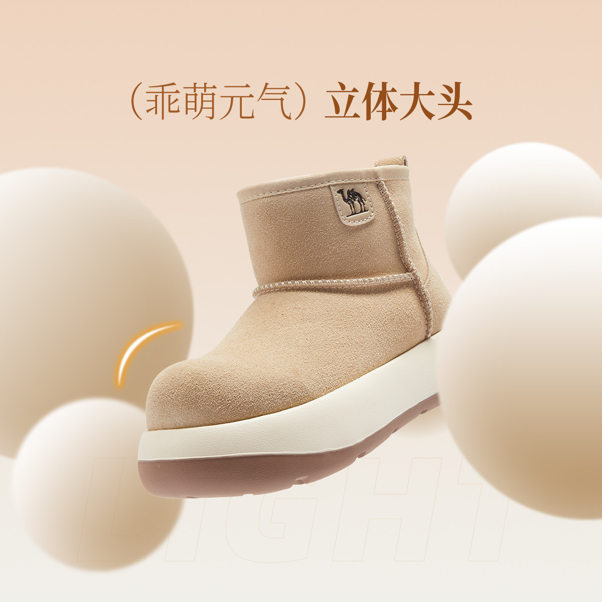 骆驼女鞋2025冬新款厚底雪地靴女加绒加厚东北户外保暖短筒棉鞋女