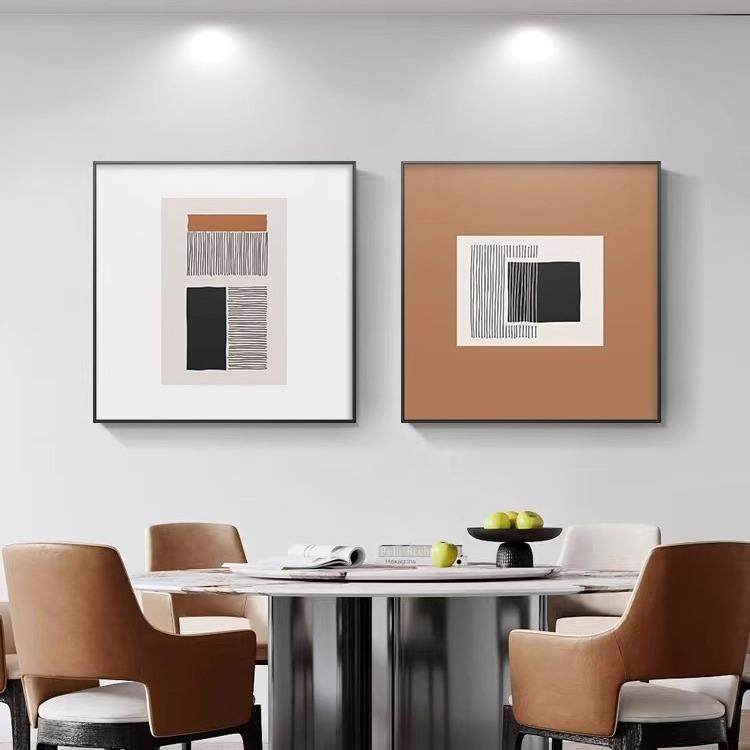 轻奢风格现代简约高档壁画抽象墙面正方形组合餐厅装饰画两联挂画