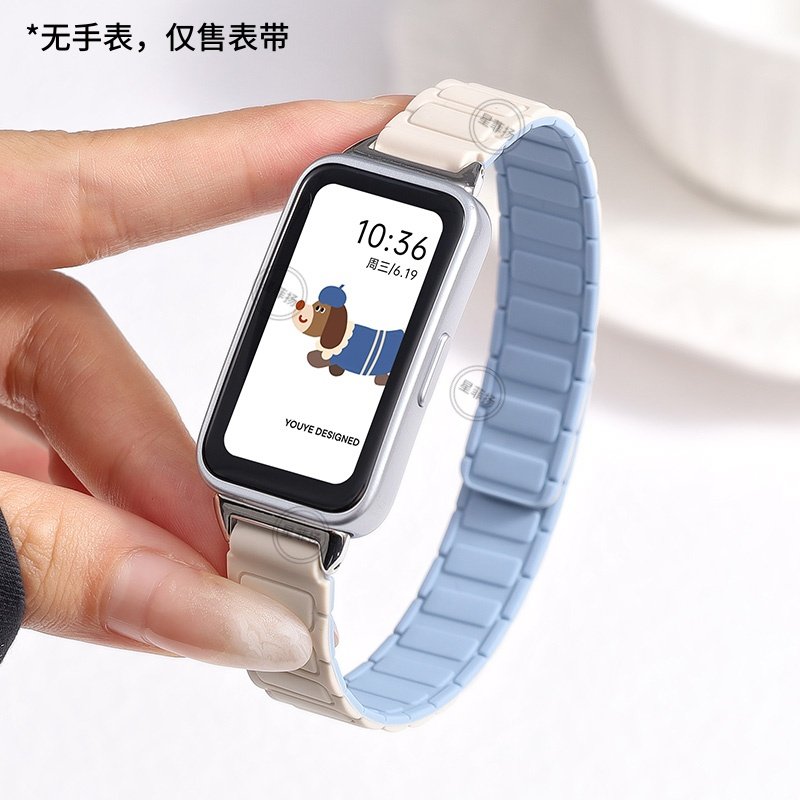 适用华为手环9/10表带张婧仪同款升级装甲磁吸回环8/7nfc硅胶腕带运动智能手环男女生高级感荣耀手环9/10表带