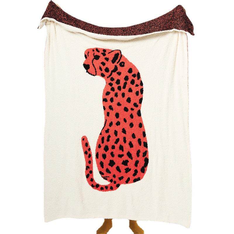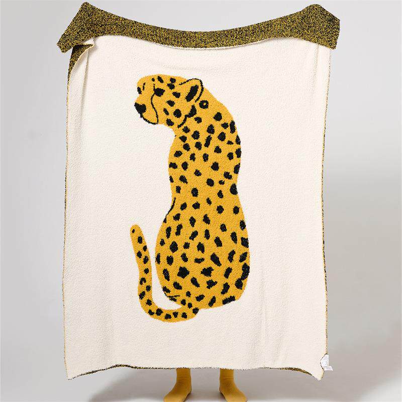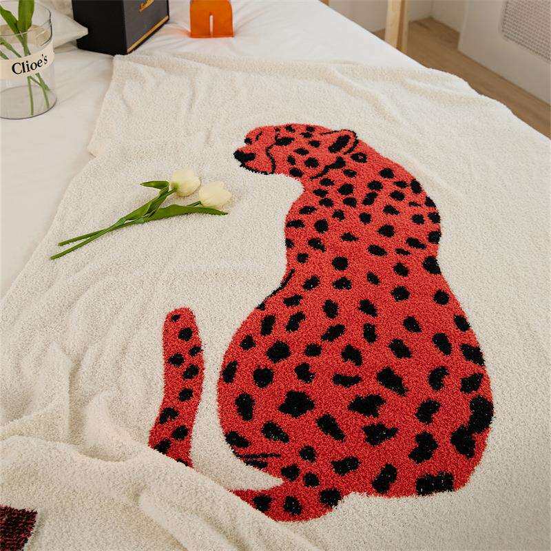 瑞景跨境货源半边绒豹子盖毯毛线毯子午睡毯软装搭配线毯美豹
